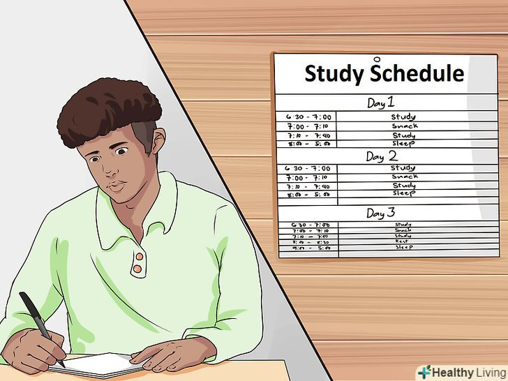 Плануйте своє навчання заздалегідь.якщо у вас всього лише кілька годин, щоб підготуватися до іспиту, то дорога кожна хвилина. Правильний план допоможе вам засвоїти найбільш важливий матеріал. Вивчення деталей краще відкласти до наступного іспиту, для підготовки до якого у вас буде більше часу. [5]- Врахуйте все, що вам відомо про майбутній іспит: рекомендовані підручники, програму курсу і так далі.