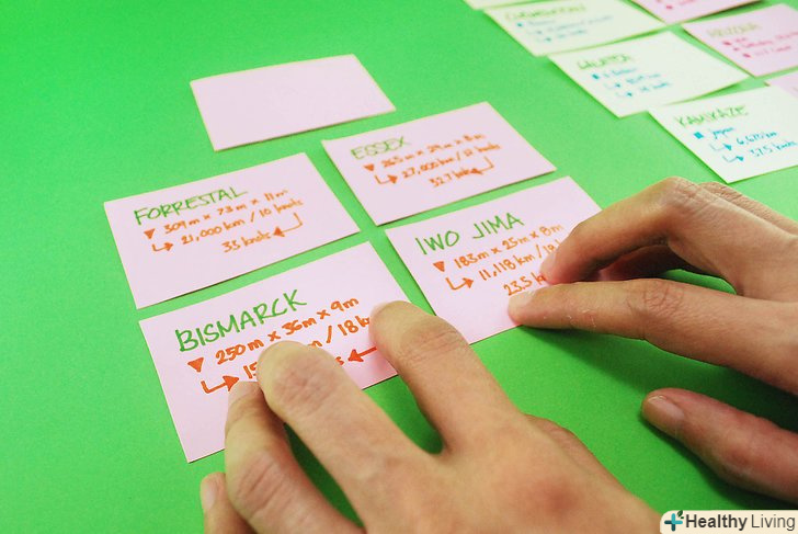 Картки для запам'ятовування-ефективний навчальний інструмент. На одній стороні записаний питання або термін, а на звороті міститься відповідь або визначення, що дуже зручно в процесі навчання. Описана нижче методика допоможе запам'ятовувати за допомогою карток легше і швидше.