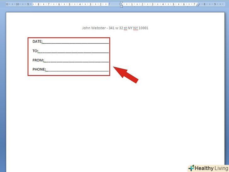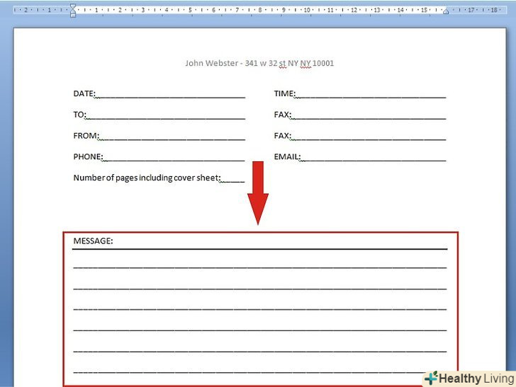 - Зверніть увагу, що ім'я одержувача і номер факсу повинні бути розташовані на одній горизонтальній лінії. Аналогічно, ваше ім'я та номер факсу слід розмістити на окремій горизонтальній лінії.