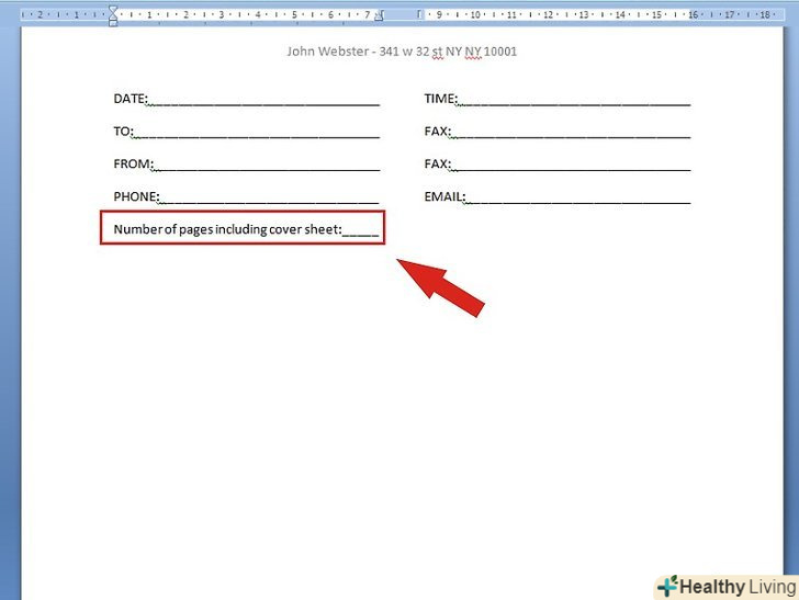 Вкажіть кількість сторінок. безпосередньо під інформацією в лівій колонці вкажіть кількість сторінок, що містяться у факсі. Введіть цю інформацію приблизно так: "Кількість сторінок, включаючи титульний аркуш:..»- Зверніть увагу, що цей рядок необов'язково писати великими літерами.