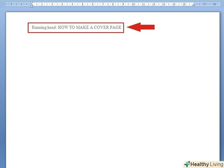 Зробіть колонтитул у верхньому лівому куті.Колонтитул-це заголовок, який буде знайдений на кожній сторінці вашої статті. Ваш колонтитул повинен включати скорочену форму назви.[17]- Введіть колонтитул зі словами "колонтитул". Після двокрапки вкажіть назву.