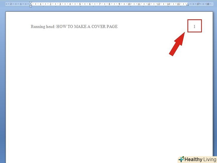 Вставте номер сторінки у верхньому правому куті.оскільки це перша сторінка вашого рукопису, номер сторінки буде «1". Цифри повинні бути стандартними (арабськими), а не римськими.[18]- Номер сторінки і колонтитул необхідно рівномірно вирівняти по горизонталі.