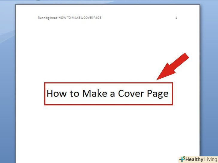 Розмістіть заголовок по центру. Заголовок повинен займати приблизно одну третину від верхньої частини сторінки. Зазвичай заголовок розташовується приблизно на 5 см нижче рядка заголовка.[19]- Основні слова повинні починатися з великої літери, але не другорядні. Наприклад: «як зробити титульний лист».