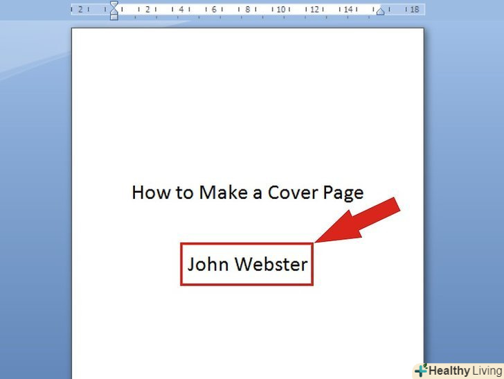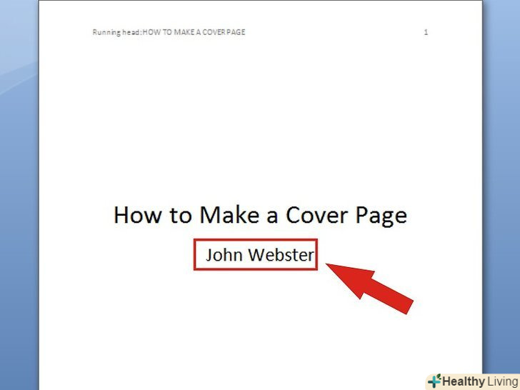 Напишіть своє ПІБ. пропустіть кілька рядків під заголовком і обов'язково вкажіть своє ім'я та прізвище. Якщо з вами співпрацювали інші люди, вкажіть їх імена.[28]- Ваше ПІБ необхідно розташувати в області нижньої третини сторінки.