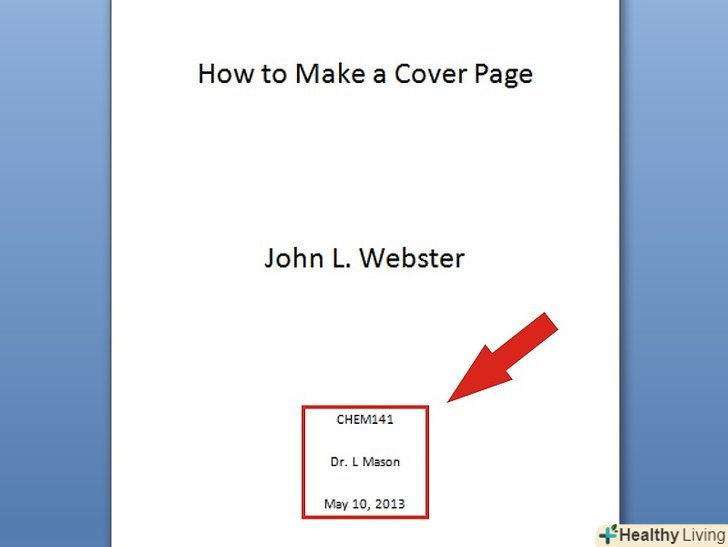 Вкажіть предмет, наукового керівника або викладача і дату в останньому розділі.зверніть увагу, що останній розділ повинен бути з подвійним інтервалом, і кожен з цих елементів необхідно вказувати в окремому рядку.[29]- Вкажіть назву та номер курсу.