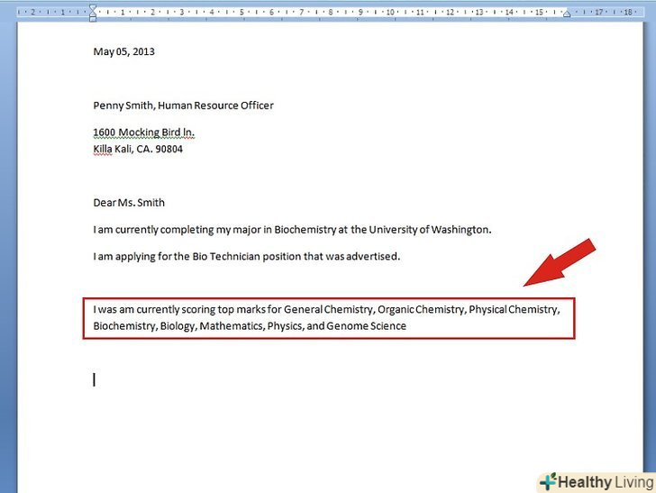 Виділіть свої навички в один-три параграфи.Побудуйте структуру листа так, щоб пояснити, чому ви підходите для цієї посади, і чому ви можете бути хорошим співробітником. Не забудьте написати кілька конкретних прикладів, які підтверджують вашу точку зору.[8]- Перегляньте оголошення про роботу і відзначте всі конкретні якості, запитувані роботодавцями. Опишіть ці якості у своєму резюме.