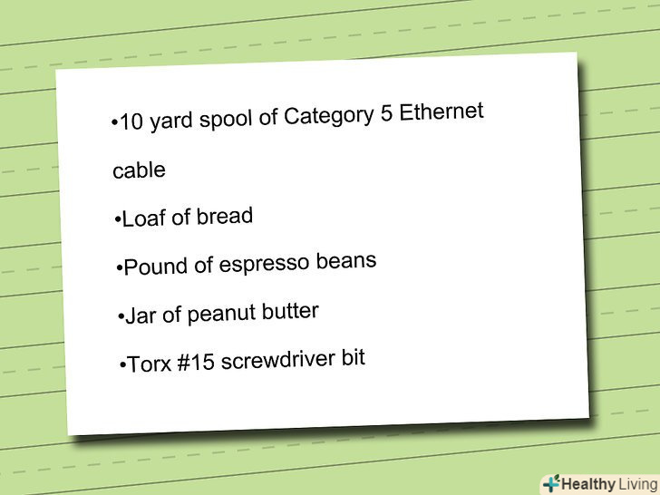 горіхове масло, кавові зерна, хліб, кабель для Інтернету, викрутка
