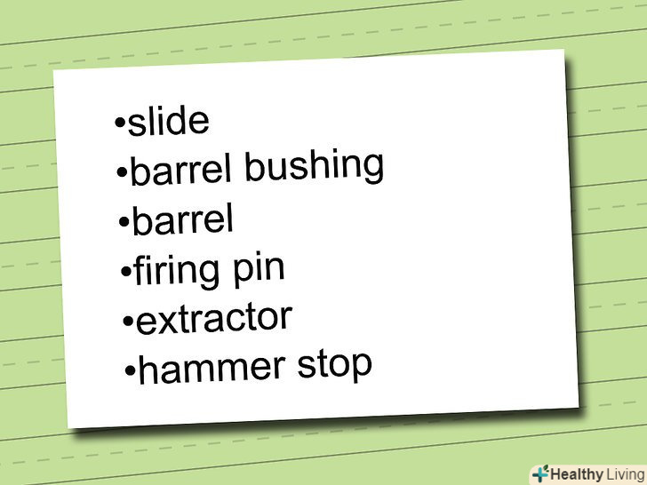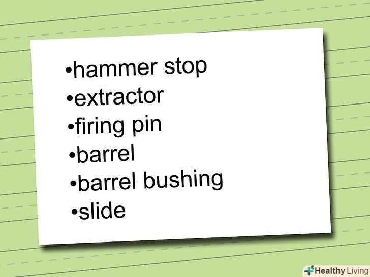 Припустимо, вам необхідно завчити компоненти затвора кольта 1911. починаючи з фронтальної частини назад, список для запам'ятовування буде виглядати наступним чином:- Затвор