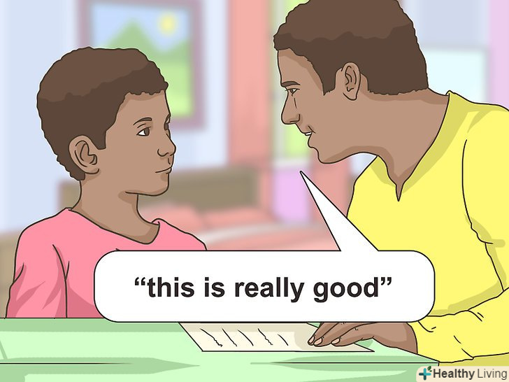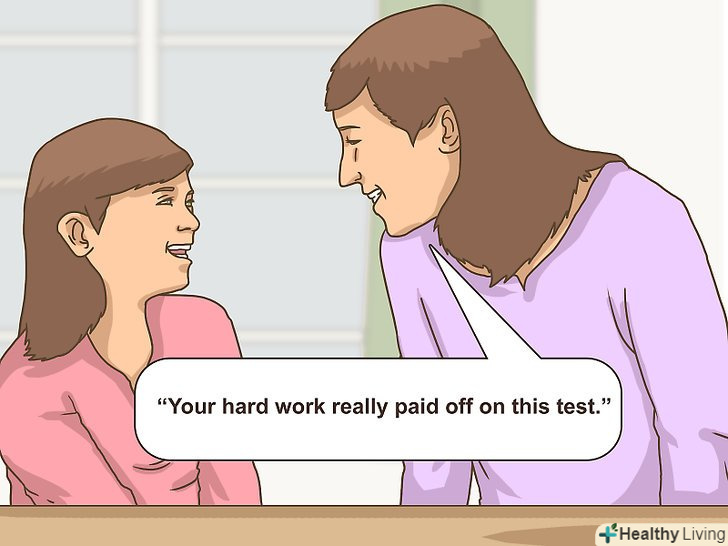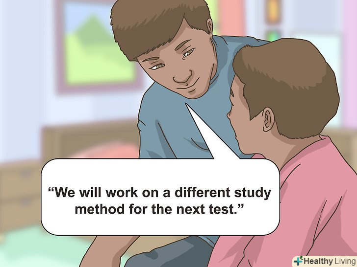 Відзначайте старанність дитини, навіть якщо у нього щось не виходить.коли результати навчання дитини не найкращим чином відповідають його власним очікуванням, забезпечте йому підтримку у формі конструктивної поради про те, як наступного разу можна показати себе краще.[9]- Наприклад, якщо дитина, незважаючи на наполегливе навчання, не кращим чином написав контрольну з математики, запропонуйте йому спільно випробувати інший підхід для підготовки до наступної контрольної.
