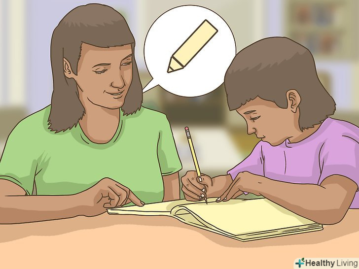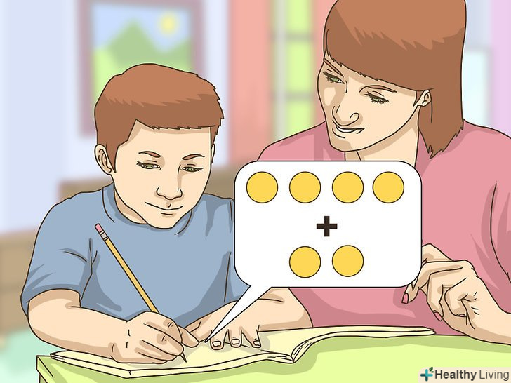 Зверніть увагу на використовуваний вашою дитиною підхід до навчання. Діти використовують різні підходи до навчання. Якщо ви помітите, що ваша дитина більше схильний покладатися на слухові, візуальні або тактильні методи сприйняття, можна допомогти йому виробити більш ефективний підхід до навчання.[10]- Щоб визначити підхід вашої дитини до навчання, поспостерігайте за тим, як він вирішує математичну задачу. Якщо дитина більше покладається на візуальне сприйняття, ймовірно, він захоче відобразити на папері кількісні складові завдання. Якщо дитина покладається на слухове сприйняття, він може читати умову завдання голосно вголос. Якщо ж дитині краще дається тактильне сприйняття, при вирішенні завдання він може торкатися до реальних об'єктів, що відображає її кількісні показники.