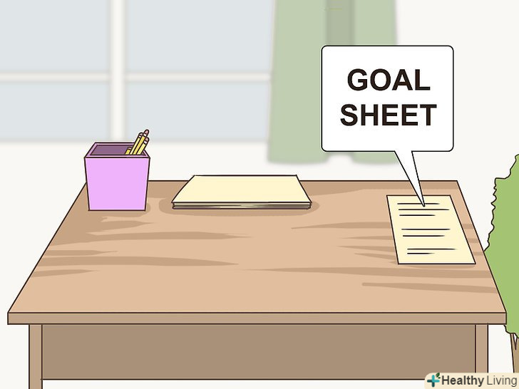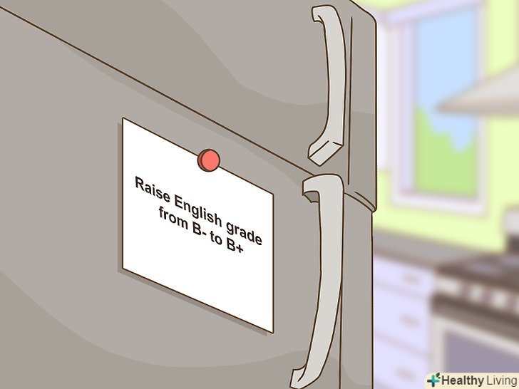 Допоможіть дитині поставити перед собою цілі.Постановка цілей важлива для того, щоб дитина могла оцінити власний прогрес і відчути почуття задоволення від завершення поставлених завдань. Правильні цілі допоможуть мотивувати дитину докладати особливих зусиль до хорошого навчання в школі.[3]- Запишіть цілі на папері. Діти, як і дорослі, більше схильні докладати зусиль до досягнення цілей, коли вони викладені на папері. Прикріпіть список цілей на холодильник або до дверей дитячої кімнати, щоб він завжди був на виду.