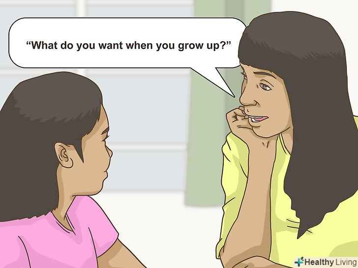 Поясніть дитині зв'язок між навчанням і реальним життям.нерідко діти виправдовують відсутність інтересу до навчання тим, що їм це нудно або тим, що вона ніяк не пов'язана з реальним життям. Якщо ви знайдете спосіб продемонструвати реальний взаємозв'язок навчання і подальшої роботи, то дитина може більше зацікавитися вивченням навчального матеріалу.[6]- Почніть з того, що запитаєте дитину, ким він хоче стати, коли виросте. Якщо у нього вже сформувалися конкретні ідеї, обговоріть з ним, що саме потрібно для того, щоб досягти бажаного. Наприклад, якщо дитина хоче стати лікарем, розкажіть йому про важливість природничих наук для цієї професії, а також математики.