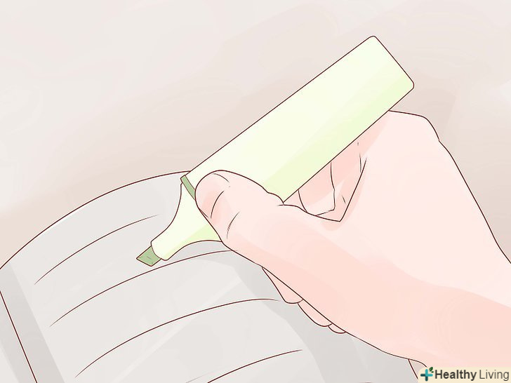 Використовуйте різні методи приміток у тексті. Примітки служать способом закріплення вивченого: ви можете повторно швидко відшукати необхідну інформацію і це також нагадає вам початкові думки, що виникли при виділенні цих частин тексту. Методи позначок в тексті залежать від того, що ви читаєте, наприклад, Чи ваша це власна книга або з бібліотеки, або роздрукована на папері або ж електронна книга у форматі pdf і т. д.