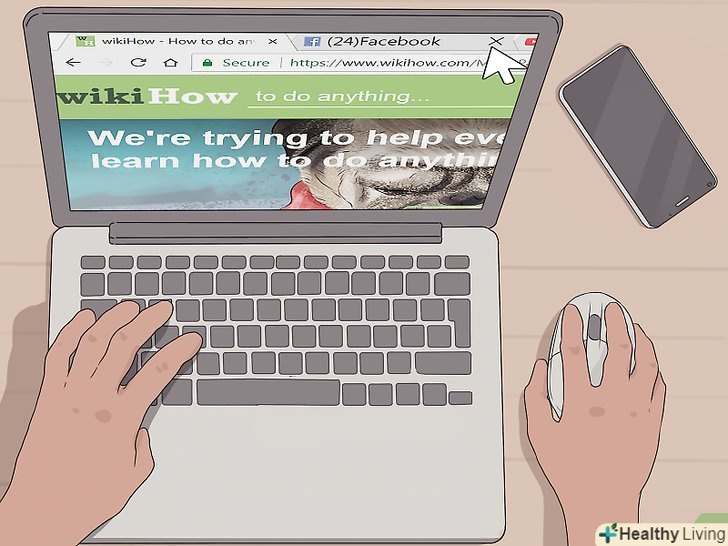 Увімкніть комп'ютер і закрийте всі непотрібні вкладки перед початком роботи.при роботі на ПК закрийте вікна або вкладки, які не відносяться до навчання. Підготуйте необхідні документи у форматі PDF. Якщо у вас ноутбук, працюйте біля розетки, щоб акумулятор не розрядився і не відволікав вас від навчання.- Якщо ви легко відволікаєтеся, але читаєте з комп'ютера або шукаєте матеріали в інтернеті, можна заздалегідь знайти і надрукувати потрібні статті.[17]