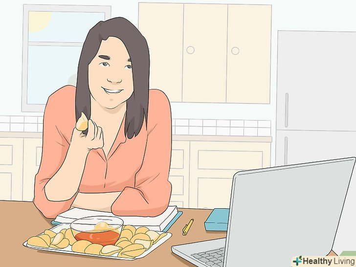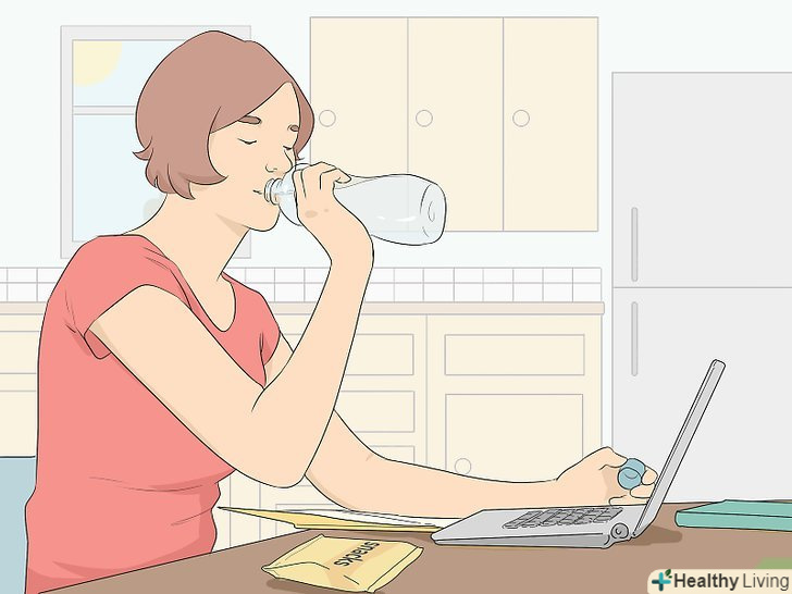 Пийте воду і не забувайте підкріпитися.пийте багато води і візьміть з собою пляшку з водою, щоб не відчувати спрагу. Поставте поруч з собою блюдо з арахісом, злаковими батончиками або свіжими фруктами, щоб завжди була можливість заспокоїти бурчить шлунок і поповнити запас сил.[19]- Намагайтеся не займатися відразу після щільного обіду, інакше можна розслабитися і заснути.