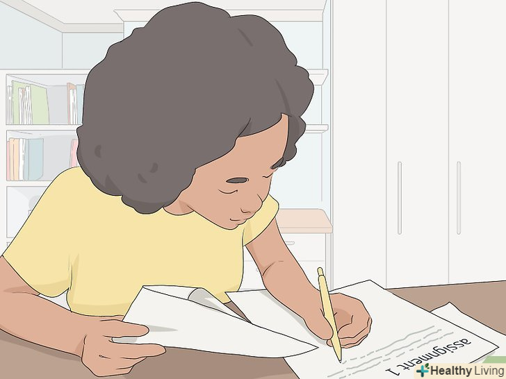 Розділяйте роботу на менші цілі і завдання.ставте конкретні цілі для кожного заняття з предмету.[8] розділяйте масштабні цілі на менші, здійсненні завдання. Визначайте конкретні і досяжні цілі, які можна виконувати по черзі.[9] Таким чином ви будете рухатися вперед, а успішне виконання кожної мети дозволить відчувати почуття задоволення в кінці кожного заняття.- Великий обсяг робіт і нескінченних завдань бентежить. Замість думок: "скільки потрібно часу, щоб з усім впоратися?"- запитайте себе: "скільки я встигну зробити за дві години?»
