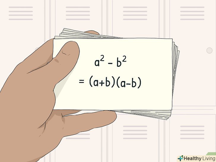 ВикористовуйтеМнемонічні прийоми для запам'ятовування фактів.мнемонічні прийоми-це прості словесні підказки, які допомагають запам'ятовувати інформацію. Крім іншого, можна створювати акроніми, щоб запам'ятовувати списки слів або ідей, складати пісеньки і вірші, щоб запам'ятовувати важливі імена і дати з історії або сюжет роману для уроку літератури.[23] ідеї для мнемонічних прийомів можна знаходити в інтернеті або придумувати самостійно.- Наприклад, запам'ятати кольори веселки (червоний, помаранчевий, жовтий, зелений, блакитний, синій і фіолетовий) можна по перших буквах фрази: «Кожен мисливець бажає знати, де сидить фазан».