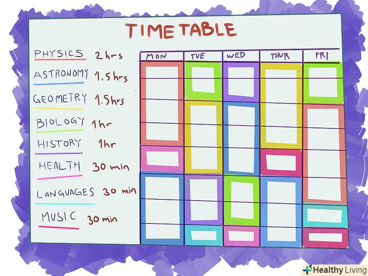 Повертаючись до кроку номер два, визначте, скільки годин / хвилин ви хочете витратити на кожен з предметів.