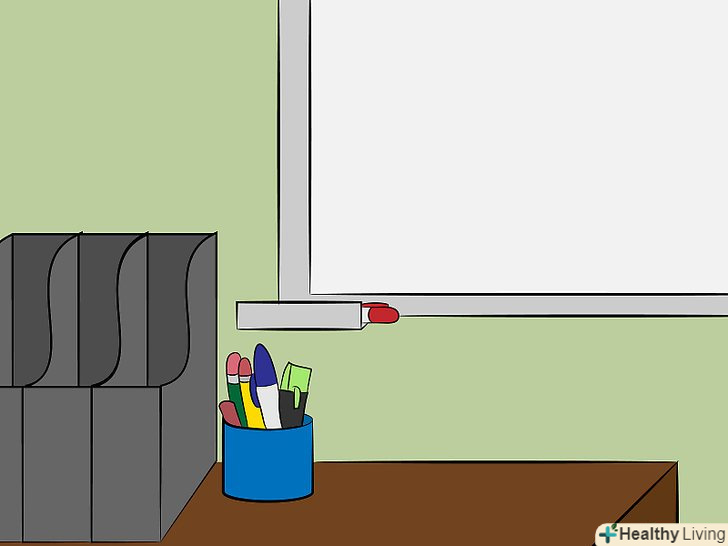 Наведіть порядок. Купіть собі щоденник або великий настінний календар. Наведіть порядок там, де ви будете займатися. Приберіть те, що вам не потрібно (книги, журнали, комікси), і підготуйте те, що вам знадобиться (олівці, ручки, маркери, блокноти). Ваше робоче місце має бути вашим особистим місцем, де вас нічого не відволікає. Складіть речі в тому порядку, в якому Вам зручно, щоб швидко знаходити їх.- Заведіть для кожного предметаокремий конспект і приклейте на зошити наклейки, щоб відрізняти їх.