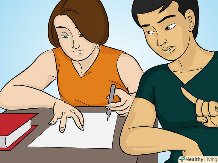 Поговоріть зі своїми батьками.ваші батьки не хочуть, щоб Ви отримували погані оцінки, і якщо ви визнаєте, що у вас проблеми, вони напевно погодяться допомогти.[5] навіть якщо вам всього лише потрібно, щоб вони контролювали, чи вчасно ви робите завдання, звернутися за допомогою буде чудовою ідеєю.- Пам'ятайте, що така поведінка, можливо, допоможе вам завоювати їхню довіру і підтримку в майбутньому. Наприклад, якщо вони будуть бачити, що вам важко дається математика, вони можуть найняти вам репетитора на семестр або на все літо.