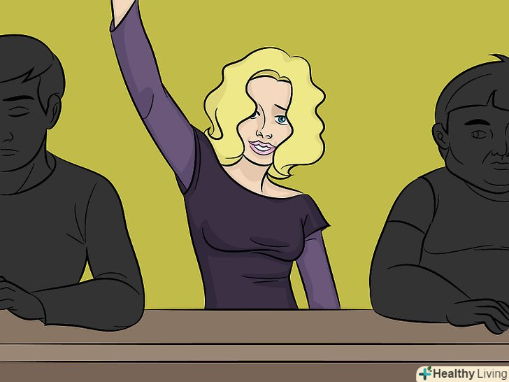 Будьте активні на кожному занятті. [22] це особливо важливо, якщо активність в класі впливає на фінальну оцінку. Якщо активність враховується, викладачеві буде важливіше якість, а не кількість. Участь в занятті дозволяє викладачеві оцінити вашу ступінь володіння предметом. За допомогою активної взаємодії зі студентами викладачеві простіше зрозуміти, чи все він пояснив доступно.- Обговорення в класі часто перетворюються в дебати, а викладачеві саме цього і хочеться! Якщо ви не згодні з тим, що говорить одногрупник, скажіть про це, але будьте ввічливі. Не перетворюйте дебати в запеклу суперечку.