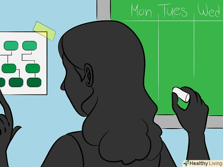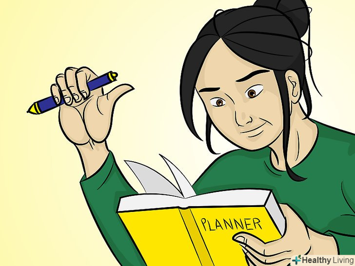 СкладітьГрафік навчання і дотримуйтеся його. подивіться в календарі, що вам ще потрібно зробити, і складіть докладний графік. Поставте перед собою цілі на кожен день, а також відзначте час, в яке ви будете займатися.[6] намагайтеся не виділяти багато часу на тему, Якщо тільки в цьому немає гострої необхідності. По можливості вчіть більше однієї теми в день.[7]- Пам'ятайте, що ефективніше вчити кожен день невеликими частинами, ніж намагатися засвоїти весь матеріал в останню ніч перед іспитом.