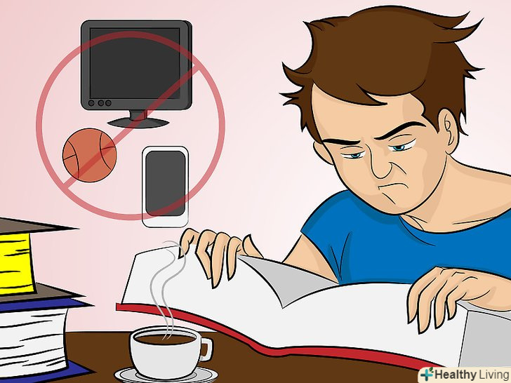 Зберіться і терпіть до тих пір, поки все не закінчиться.це не найкраща порада, однак, якщо у вас вкрай мало часу, піднатисніть і вчіть все підряд. Намагайтеся запам'ятати якомога більше за час, що залишився. Пийте більше напоїв з кофеїном. Відмовтеся від декількох годин сну. Вважайте, що ви вийшли на фінішну пряму, і постарайтеся зробити все, що від вас залежить.[9]- Не відволікайтеся під час підготовки. Вимкніть мобільний телефон і телевізор. Не слухайте музику, де є слова. У вас мало часу-розпорядитеся їм правильно.