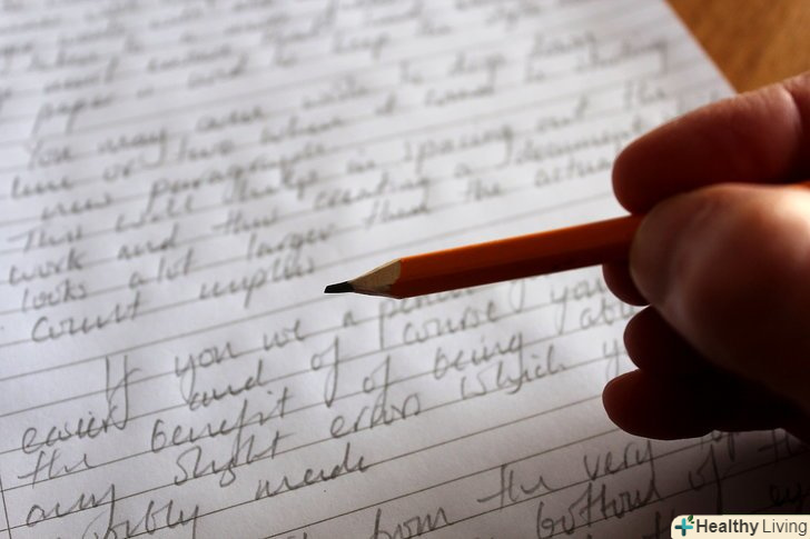 Змініть почерк.[6] робити це не обов'язково, хоча це і дозволить зменшити навантаження. Розробіть почерк, який буде читаним, але при цьому швидким. За почерк оцінки не ставлять, і на акуратне написання букв йде багато цінного часу, особливо якщо перед вами потокова робота.- Ідеальний почерк дозволяє писати швидко — але розбірливо-розробіть стиль письма, за допомогою якого ви будете швидко записувати слова на сторінці, але при цьому кожне слово можна буде прочитати без особливих зусиль. Для цієї мети відмінно підходять ручки з товщиною лінії письма 0,7 мм.