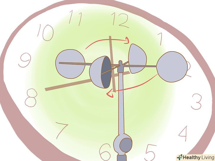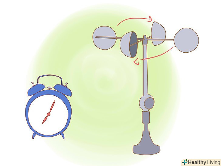 - Можна співвіднести частоту обертового вітром об'єкта з фактичною швидкістю вітру, спочатку дізнавшись довжину кола, яку проходить одна з обертових лопатей. Потім дану величину потрібно перетворити в милі або кілометри і помножити на частоту обертання, дізнавшись, таким чином, яку відстань долає предмет за хвилину обертання. Помноживши це число на 60, Ви визначите відстань, що долається за 1 годину, що і буде швидкістю вітру.[3]
