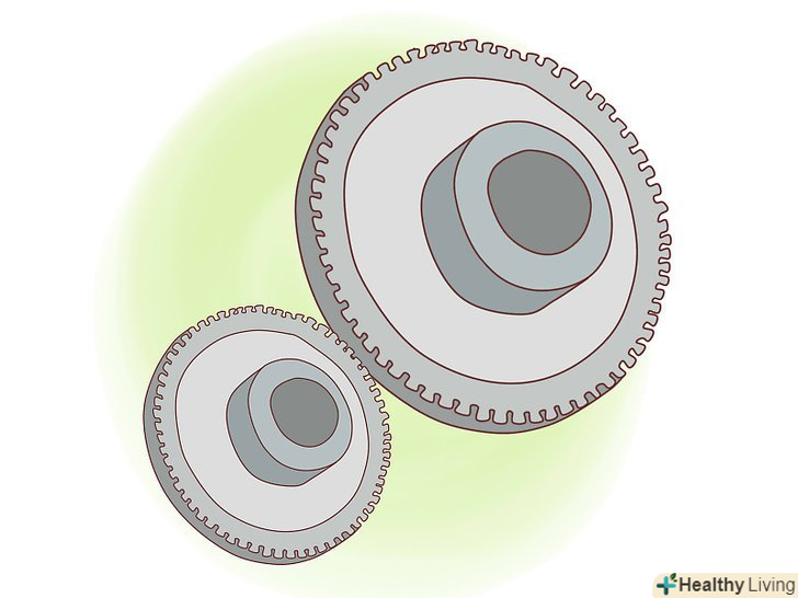 Підрахуйте кількість зубів веденого колеса.ведене ЗК - це Шестерня, зуби якої зачіпляються з зубами ведучого ЗК. Зуби ведучого ЗК штовхають зуби веденого ЗК, що призводить до обертання всієї веденої шестерні. Це саме та шестерня, швидкість обертання якої ми будемо підраховувати.- З метою даного прикладу ми візьмемо два ведених ЗК різної величини, одне з яких менше провідної шестерні, а друге – більше.