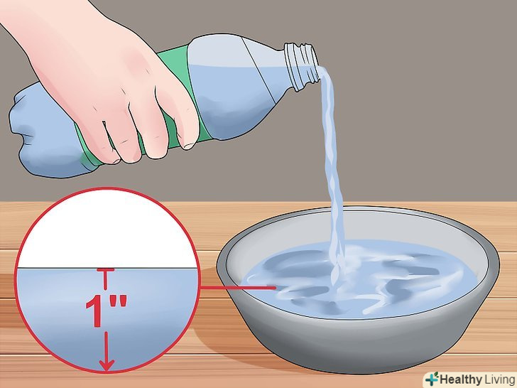 Налийте в ємність рідину з невідомим поверхневим натягом.Візьміть неглибоку тарілку або миску і налийте в неї рідину, так щоб вона покривала дно на 2-3 сантиметри. Кількість рідини не грає ролі, головне, щоб було чітко видно, наскільки вона підніметься в капілярній трубці.- Якщо ви збираєтеся експериментувати з різними рідинами, ретельно очистіть і висушіть тарілку, перш ніж наливати в неї іншу рідину, або кожен раз використовуйте іншу ємність.