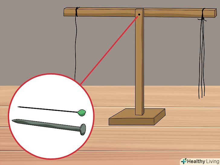 - При необхідності підіпріть коромисло книгами або іншими досить твердими предметами, щоб перекладина залишалася в горизонтальному положенні. Необхідно, щоб перекладина вільно оберталася навколо встромленого в її середину цвяха або стрижня.