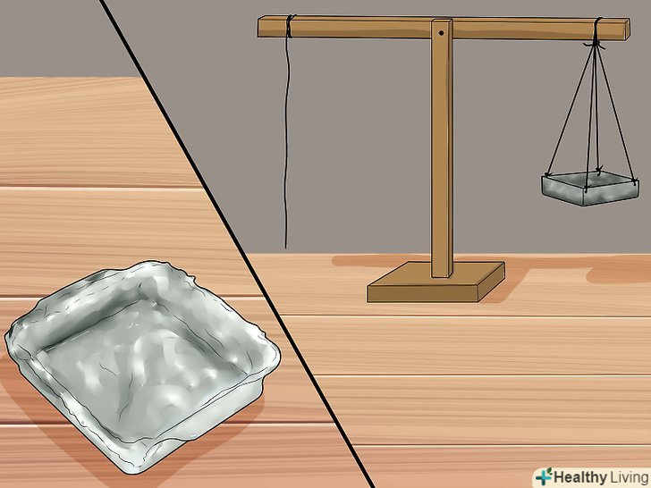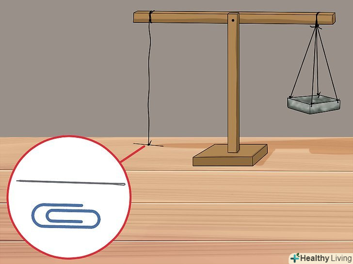 Візьміть шматок алюмінієвої фольги і згорніть її у формі коробочки або блюдця.зовсім не обов'язково, щоб це блюдце мало правильну квадратну або круглу форму. Ви заповните його водою або іншим вантажем, так що подбайте про те, щоб воно витримало вагу.- Підвісьте коробочку або блюдце з фольги до одного кінця поперечини. Виконайте по краях блюдця невеликі отвори і протягніть через них нитку, так щоб блюдце висіло на перекладині.