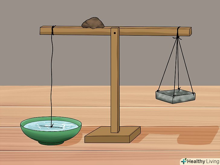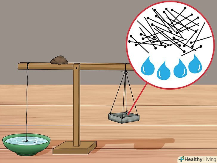 Додайте шпильки або краплі води по одній в блюдце з алюмінієвої фольги до тих пір, поки голка не відірветься від поверхні води.поступово додавайте по одній шпильці або краплі води. Уважно спостерігайте за голкою, щоб не пропустити момент, коли після чергового збільшення вантажу вона відірветься від води. Як тільки голка відірветься від поверхні рідини, перестаньте додавати шпильки або краплі води.- Порахуйте кількість шпильок або крапель води, при якому голка на протилежному кінці поперечини відірвалася від поверхні води.