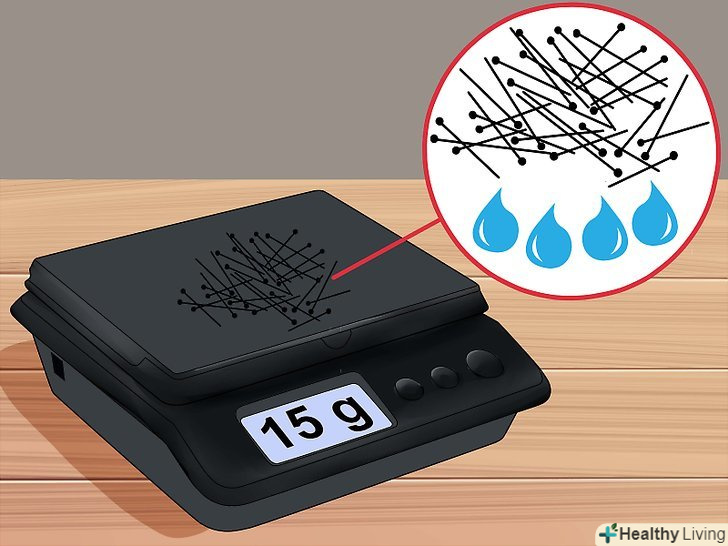 Зважте на невеликих вагах кілька шпильок або невелику кількість відміряних крапель води.ви будете додавати в алюмінієве блюдце на коромислі по одній шпильці або краплі води. При цьому необхідно знати точну вагу, при якому голка відірветься від поверхні води.- Порахуйте кількість шпильок або крапель води і зважте їх.