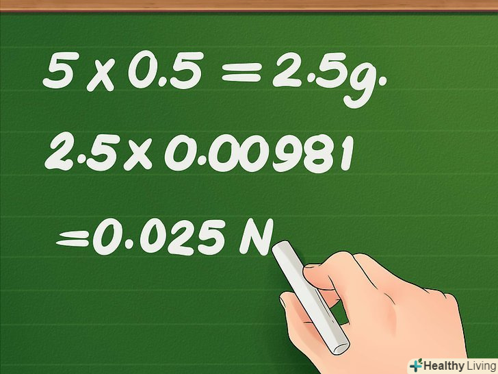 - Помножте кількість грамів на множник 0,00981 Н/г: 2,5 x 0,00981 = 0,025 Н.