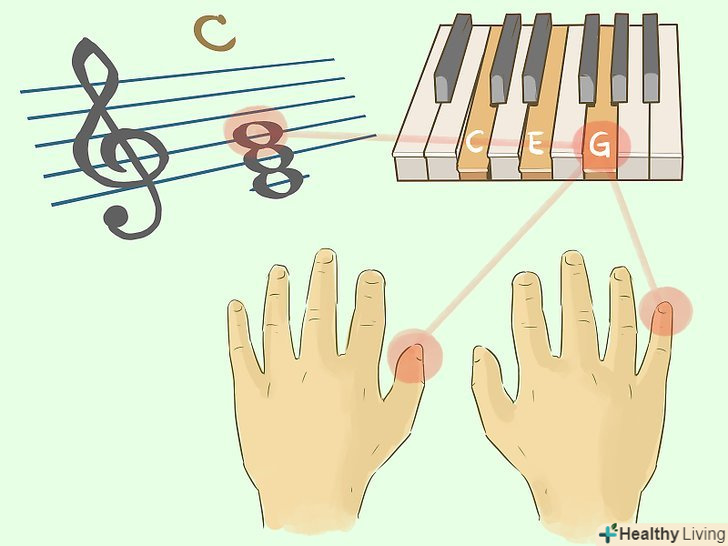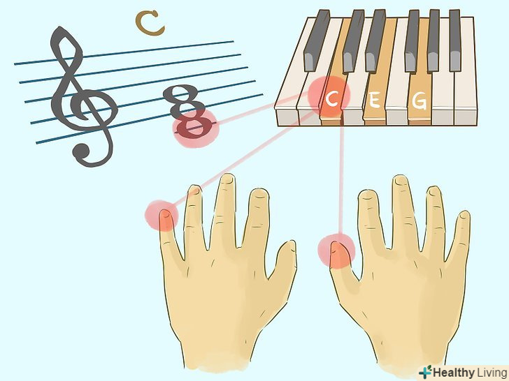 - Ви будете грати тоніку великим пальцем правої руки або мізинцем лівої руки.