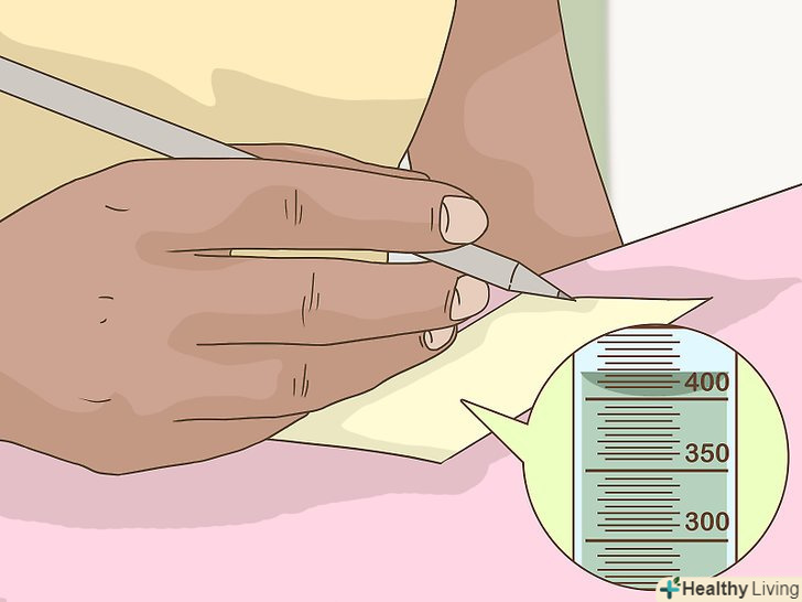 Запишіть значення рівня.для розрахунків кінцевий рівень води так само важливий, як і початковий. Потрібні точні цифри. Запишіть значення в мілілітрах в зошит або внесіть в спеціальну таблицю.[6]