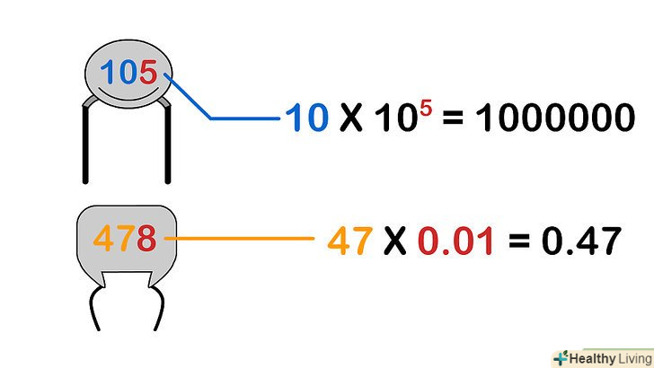 - Будьте обережні з маркуванням, що складається з числа і всього однієї літери, наприклад, «475m». Таке маркування, як правило, наносять на маленькі конденсатори.[3] у цьому випадку перейдіть до наступного розділу цієї статті.