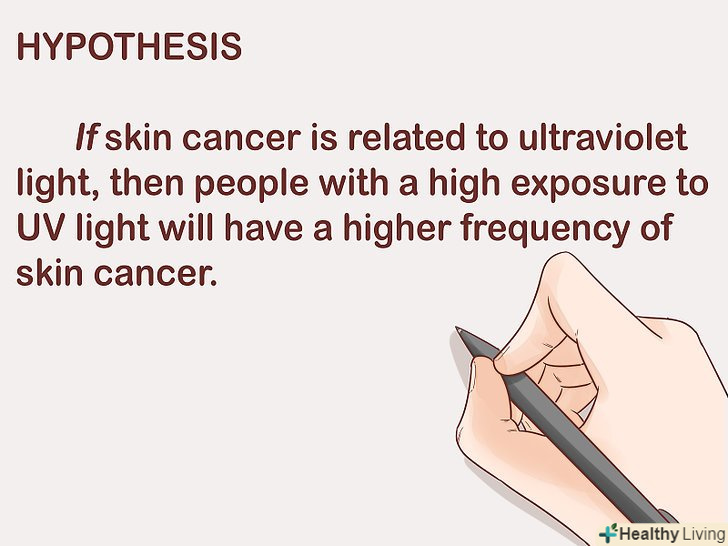 Побудуйте гіпотезу. гіпотезою називається обґрунтоване припущення або твердження, мета якого полягає в поясненні ряду фактів або природних явищ. Запропонуйте можливе пояснення, логічно випливає з ваших спостережень: придивіться до виявлених закономірностей і подумайте про те, що могло б викликати їх. Використовуйте формулювання у вигляді "якщо, то":" якщо [X] вірно, то [Y] також вірно "або" якщо [X] вірно, то [Y] невірно". Формальні гіпотези містять "незалежні" і "залежні" змінні. Незалежна змінна являє собою можливу причину, яку можна змінювати і контролювати, а залежна змінна є предметом спостережень і вимірювань.- Якщо при розвитку своєї теорії ви збираєтеся користуватися науковим методом, то гіпотеза повинна піддаватися точній і однозначній перевірці, інакше вашу теорію неможливо буде довести.