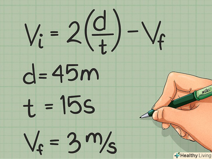 Виберіть відповідну формулу. при вирішенні фізичної задачі необхідно використовувати відповідне рівняння. Перш за все слід записати всі дані, наведені в умові завдання. Якщо відомі кінцева швидкість, час і пройдену відстань, для визначення початкової швидкості можна використовувати наступне співвідношення:- V i = V f + 2 (t - d)