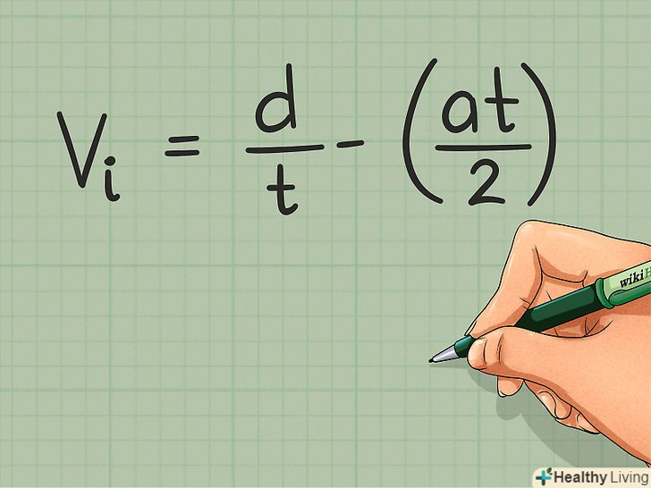 Використовуйте відповідну формулу. при вирішенні будь-якої фізичної задачі необхідно вибрати відповідне рівняння. Для цього насамперед слід записати всі дані, наведені в умові завдання. Якщо відомі пройдену відстань, час і прискорення, для визначення початкової швидкості можна використовувати наступне співвідношення:- V i = (d / t) - [(a * t) / 2]