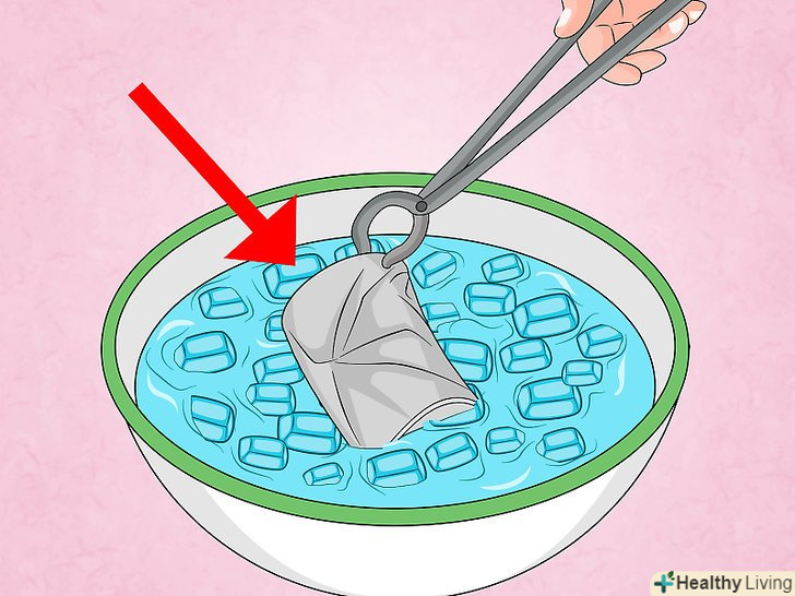 За допомогою щипців перекиньте гарячу банку догори дном в холодну воду. Тримайте щипці так, щоб ваша долоня дивилася вгору. Візьміть щипцями банку, швидко переверніть її над мискою з холодною водою і занурте її туди.- Будьте готові почути гучні звуки, тому що банку може розплющуватися досить швидко!