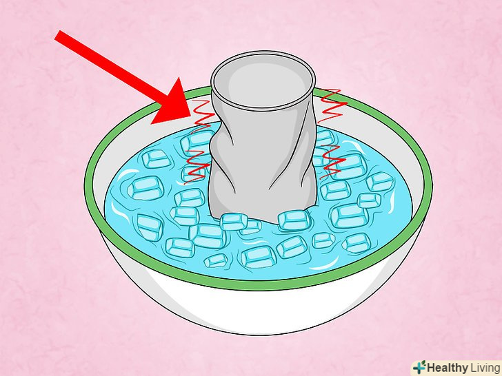 Приготуйте миску з крижаною водою. наповніть ємність холодною водою і льодом або ж водою, яка зберігалася в холодильнику. Бажано взяти миску досить глибоку для того, щоб в неї помістилася вся банка – тоді буде легше проводити експеримент – але це необов'язково. Через прозору миску буде зручніше спостерігати сплющування банки.