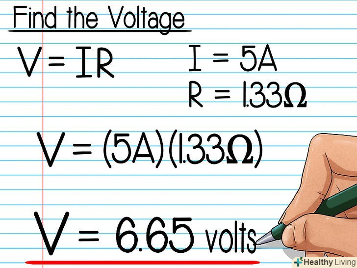 - V = (5A)(1,33 Ом) = 6,65 вольт.