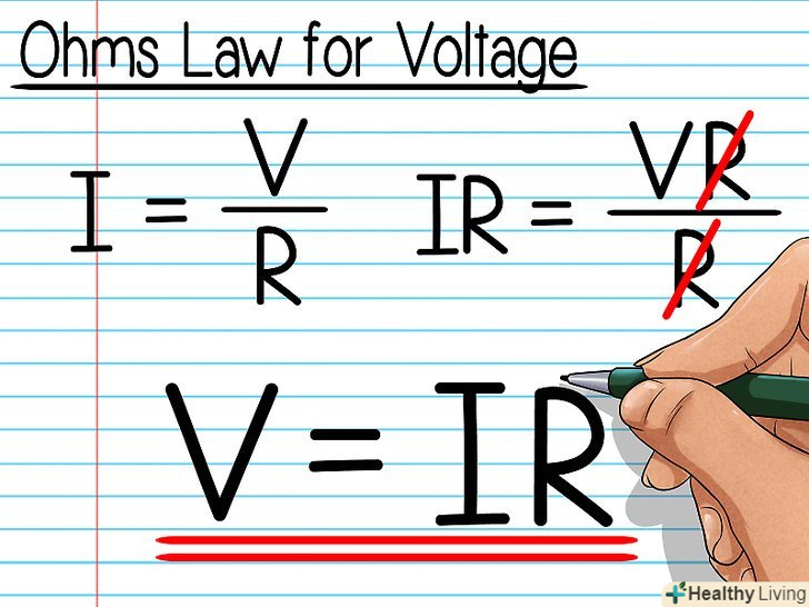 Запам'ятайте закон Ома.він являє собою просте співвідношення між струмом, напругою і опором. Запишіть або запам'ятайте це співвідношення-воно стане в нагоді вам при розрахунку електричних ланцюгів:- Струм дорівнює напрузі, поділеній на опір