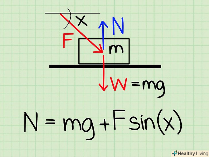 Сила нормальної реакції у разі дії зовнішньої сили, спрямованої вниз