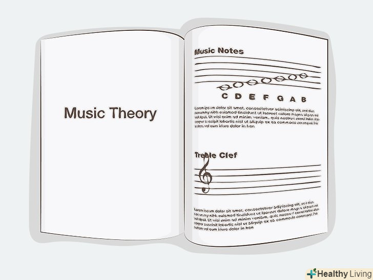 Скористайтеся підручниками з теорії музики, щоб навчитисяЧитати ноти.книги з теорії музики допомагають поліпшити розуміння музики, а також удосконалити навик читання нот з листа. Придбати ці книги можна онлайн, а також в музичних магазинах.[19]- Також можна знайти веб-сайти з вправами на закріплення знань музичної теорії, які допоможуть вам розвинути навички читання нот.