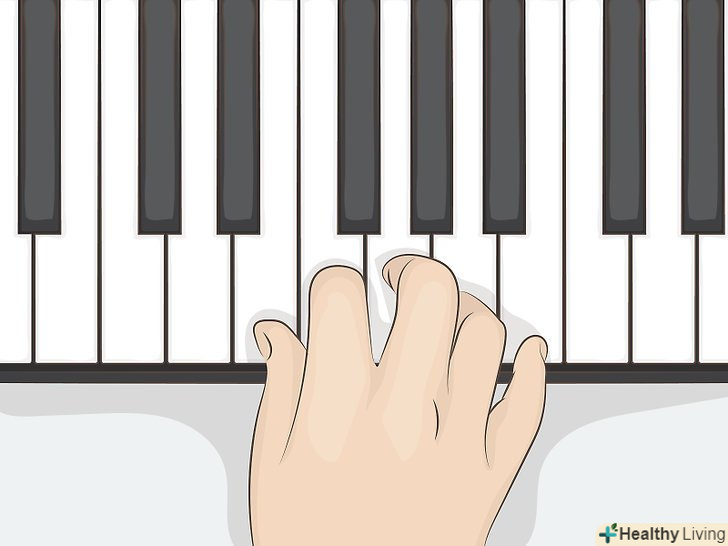 Практикуйте Правильне положення пальців на клавішах.при грі на фортепіано складайте долоні чашечкою, як якщо б ви тримали в них по яйцю, а клавіші натискайте кінчиками пальців, але не подушечками. Гра подушечками пальців легко може увійти в звичку, але в подальшому вона ускладнить вам виконання більш швидких і складним музичних творів.[7]- Якщо на початковому етапі навчання перед грою вкладати в долоню невеликий м'яч-антистрес, це допоможе вам освоїти правильне положення пальців. Заведіть собі звичку регулярно перевіряти положення пальців і при необхідності його корегуйте, поки навик не стане автоматичним.