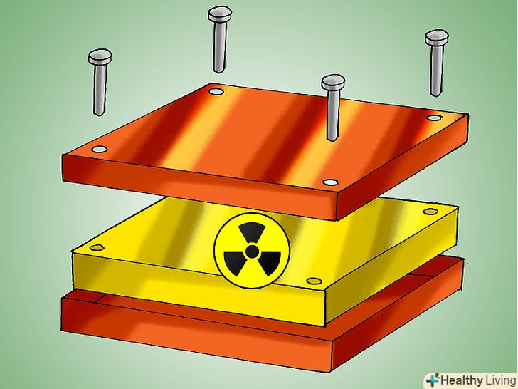 Укладіть радіоактивний матеріал в металеву оболонку.помістіть радіоактивний матеріал в корпус із золота. Закріпіть корпус у мідному тримачі. Врахуйте, що після початку розпаду радіоактивними стануть як матеріал, що ділиться, так і метали.[8]